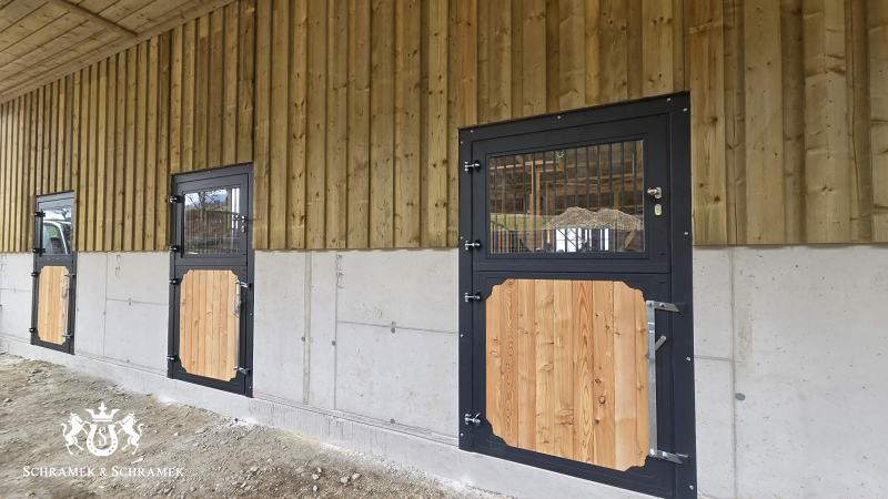 Innenboxen und Paddocktüren pulverbeschichtet und lackiert mit Denya Füllung, Österreich